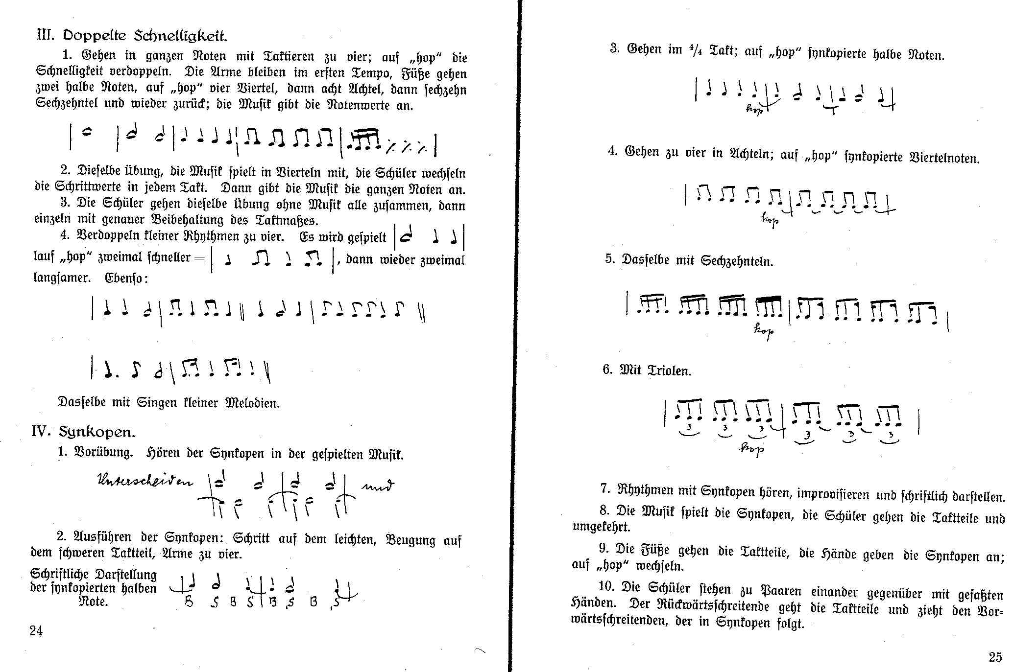 Zum download stehen hier 5 Doppelseiten aus dem ersten vegriffenen Buch von Elfriede Thurau (später "Feudel") zur Verfügung. Sie sind noch ganz an der klassischen Rhythmik orientiert