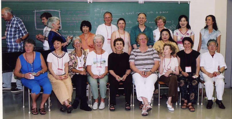 Aber auch neben den Organisationsfähigkeiten zeigte das Team um die Verbandspräsidenten Yuri Ishimaru, Toru Sakai und Eri Inoue viel Phantasie für abwechslungsreiche Kongress-Tage. Für die Dozenten bestanden die vier Kongresstage zwar aus harter Arbeit, die fiel in der freundlichen Atmosphäre jedoch leichter. So mussten wir zwar selbst in Klavierimprovisation Gruppen von 35 Teilnehmern verkraften, genossen jedoch die Motivation und die große Dankbarkeit, die traditionell denen geschenkt wird, die Können und Wissen vermitteln. Hier drei Bilder von Teilnehmern und Dozenten (nur drei, damit die Ladezeit erträglich bleibt). RR